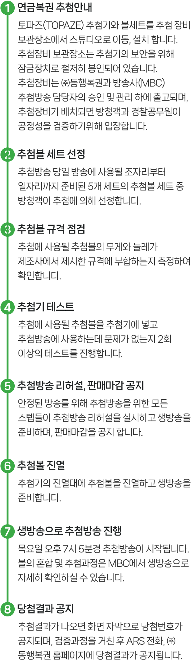 - 예비용 추첨기 : 방송 중 메인 추첨기에서 장애가 발생된 경우를 대비하여 예비용 추첨기를 설치